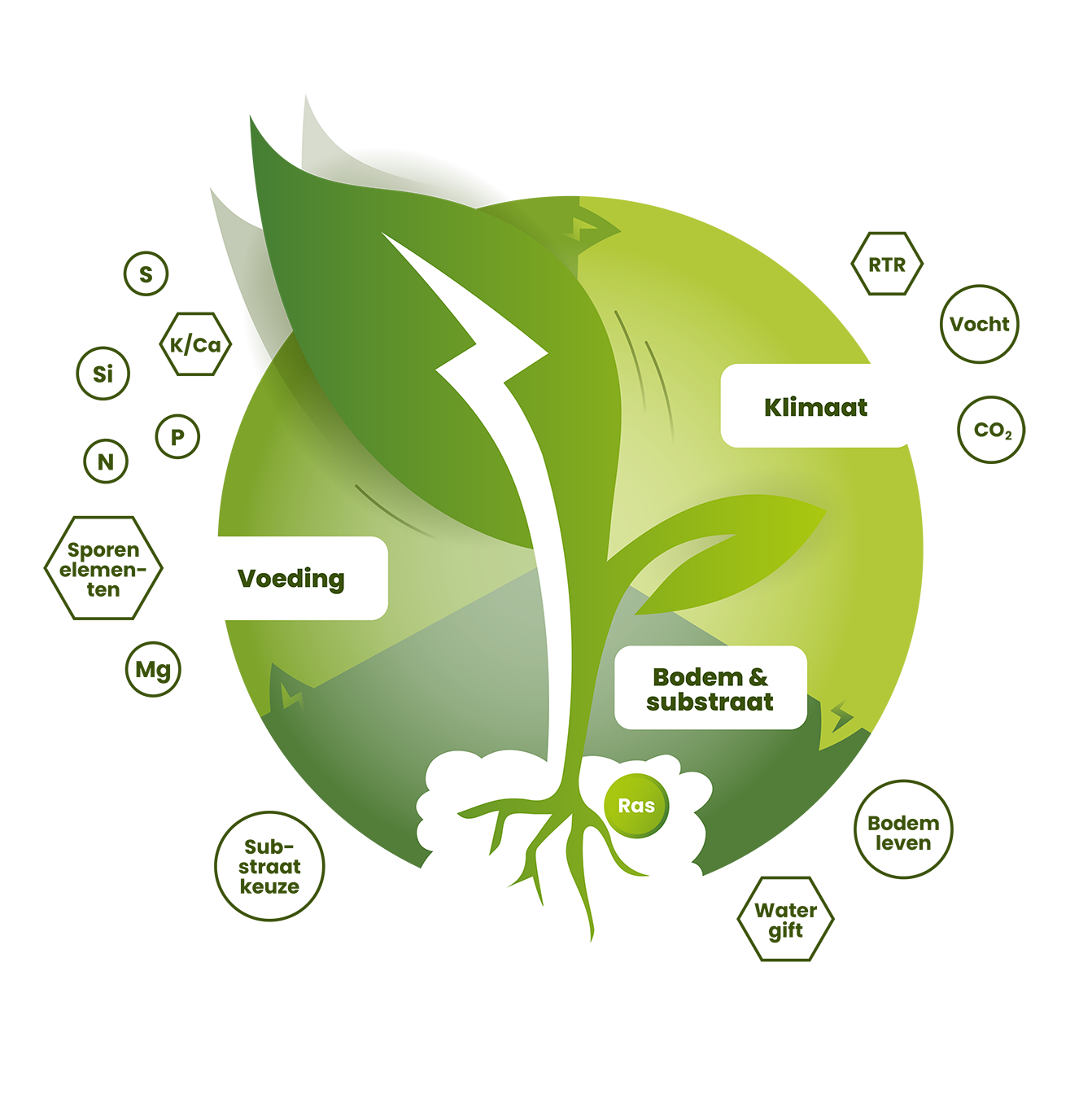 Voor het Plant Prestatie Concept combineert Power2Plants haar uitgebreide kennis en ervaring op het gebied van plant gezondheid met metingen en data van jouw teelt, om zo de ideale omstandigheden voor de planten te creëren. Het bepalen van de streefwaarden, meten, bijsturen en evalueren van het klimaat, bodem/substraat en voeding vormen hierbij de groene draad.